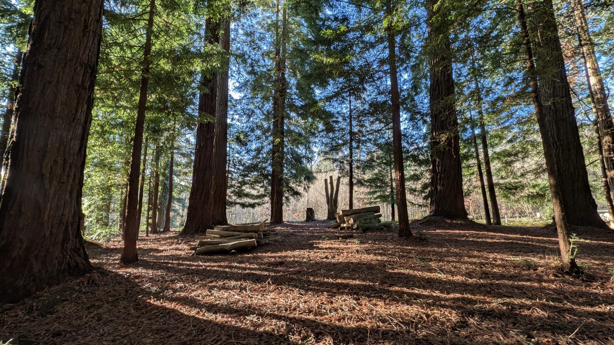 Goldcrests and finches glide lightly between teasels, finding seeds where others might see only winter’s end. Beneath the towering sequoias, fallen golden needles create a soft, insulating layer, protecting hibernating wildlife below. The ground here resists frost, sheltered by trees that have stood through centuries of change.